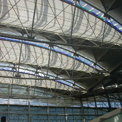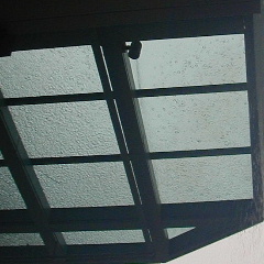 写真は、熱帯のスコールを浴びたガラス天井。