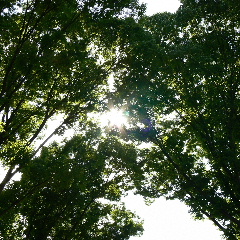 写真は、初夏の木洩れ日、梅雨に入る前に。
