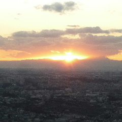 写真は、横浜ランドマークタワーから見た丹沢方面の夕焼け。