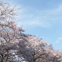 写真は、満開の桜、競技場にて。