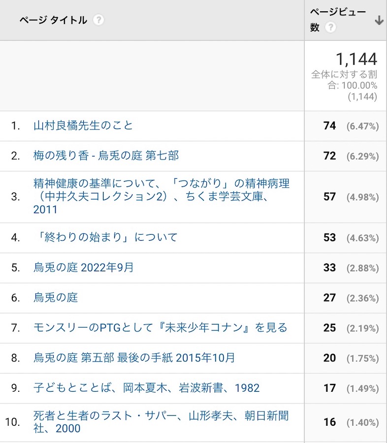 総アクセス数がとても少なかった。負け惜しみ半分で言えば、これでいい。不毛な議論に巻き込まれることもないし、おかしな人に絡まれることもない。