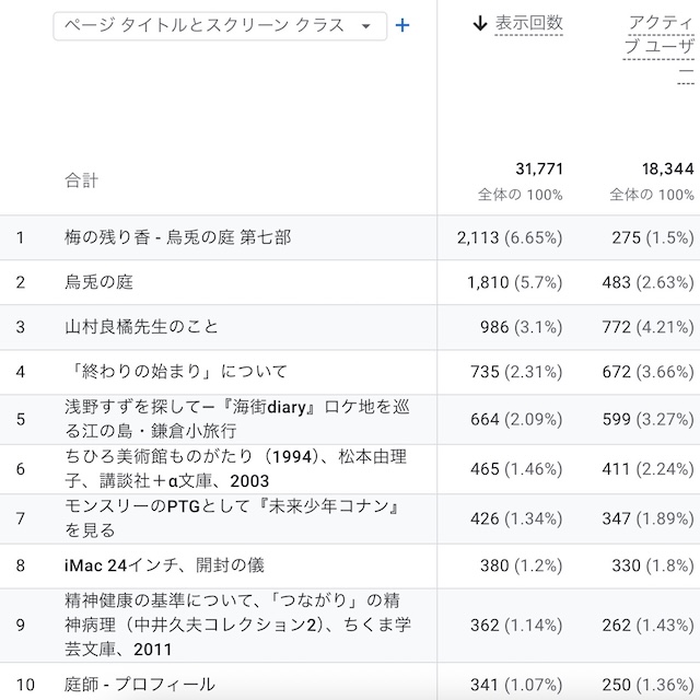 昨年のアクセス数。初めて総アクセス数が3万を越えた。読んでほしいと持っている文章も読まれた。