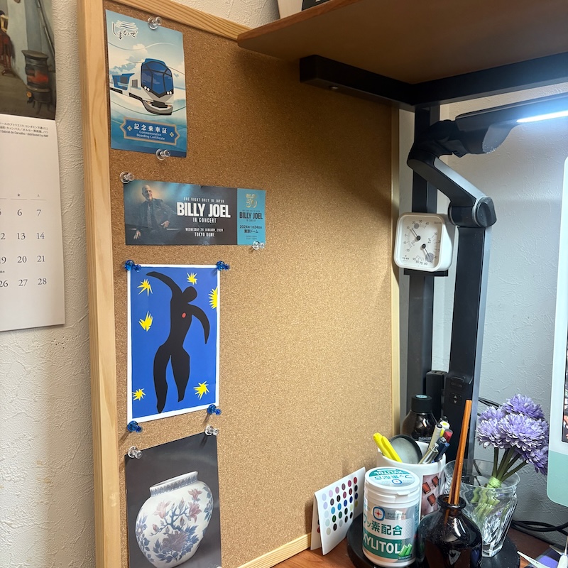 コースター用に作られたものだけど、青い色が好みだったので、コルクボードに貼り付けて部屋の飾りにした。